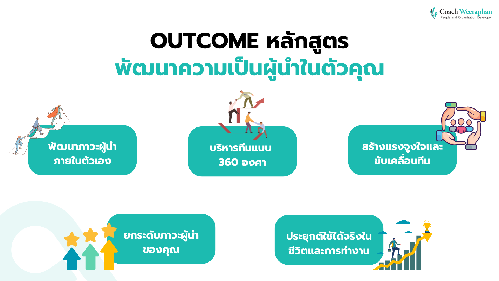 - พัฒนาภาวะผู้นำที่ครอบคลุมทั้ง หัวหน้า เพื่อนร่วมงาน และลูกน้อง